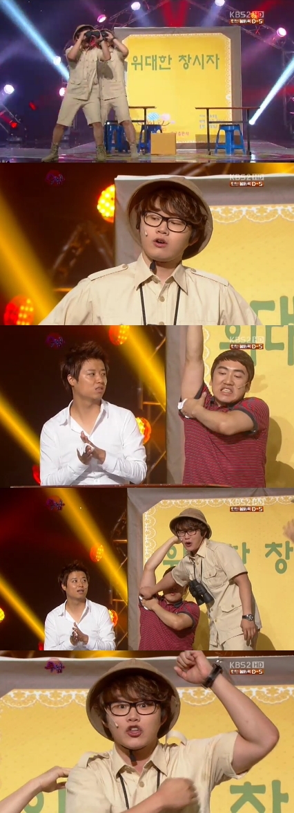 コメディアン催曉鐘正犯菌がお目見えした 7月 22日放送された KBS 2TV 'ギャグコンサート-醜男'が 2週目余勢を駆って勝っている. '醜男'は追跡する男たちのズルイムマルで歴史に記録されない案外の人物たちを捜すコーナーだ. 催曉鐘は "要式業界にセンセーションを起こした偉い人物がいる"とイ・サンフン, ホングフォンを紹介した.