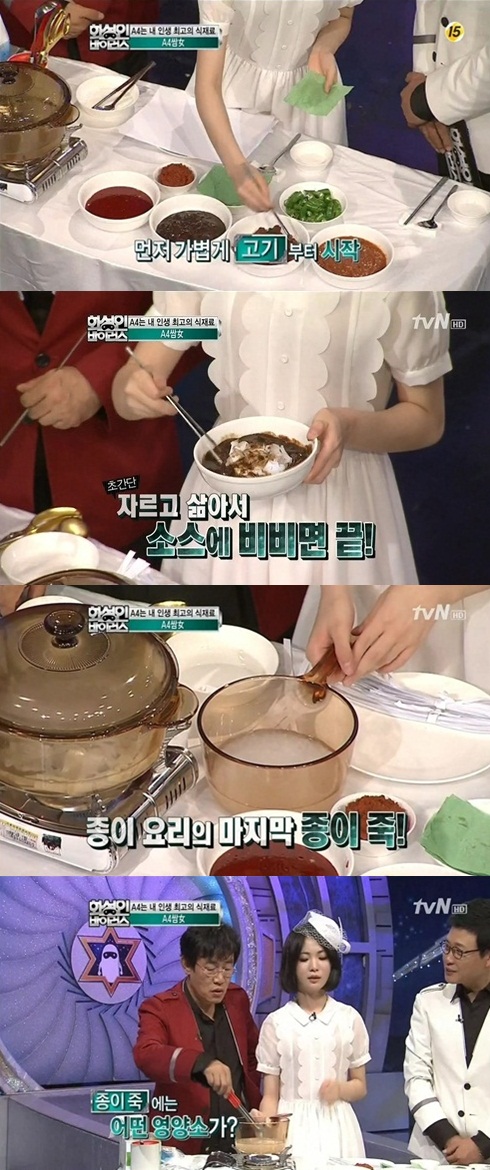 この日 2年前から食べた紙壌夷本一冊はなると明らかにした A4サムニョは "A4用紙を面で切って軽くゆでた後チャジャンを注げばジャージャーメン, 酢ゴチュジャンを注げばチョルメン, ミックソースを注げばスパゲッティになる"と伝えた.