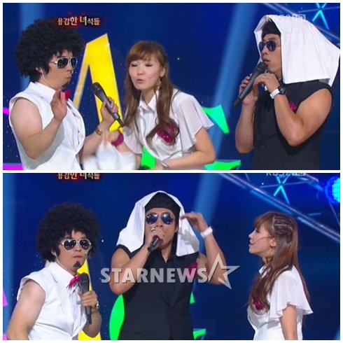 KBS 2TV 'ギャグコンサート'のヨングガムハンニョソックドル(情態号, パク・ソングァン, 良善である, 新報だと)が 20株超えるようにギョルバング中の MBC '無限挑戦'に対する愛情を現わして人目を引く.