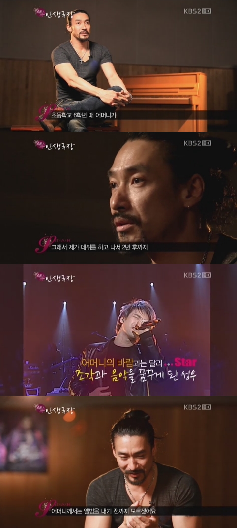 シン・ソンウは女性軍中佐出身のお母さん下で育った. ご主人と別れて一人きり息子を育てた彼のお母さんはシン・ソンウが軍人になってほしかったが結局さびしかった時代の上でがなってくれた音楽の道を選んだ.