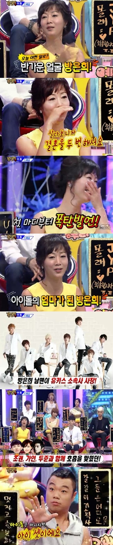 この日オープニングで MC シン・ドンヨプはパン・ウニに "'おいしい人生' チームでもなくて, JYP 所属でもないのにどうして出たの"と問ったし, パン・ウニは "サルダボだから結婚を二度真書.."と言って現場を焦土化させた.