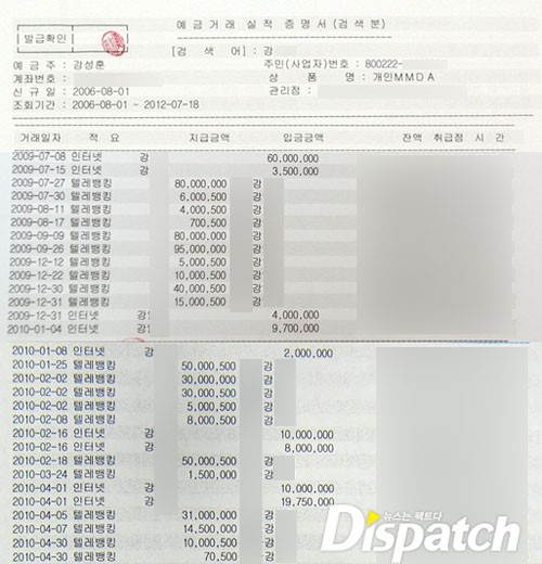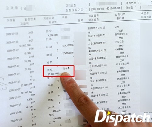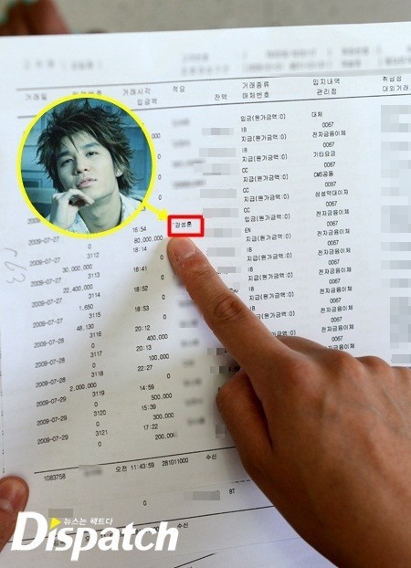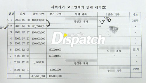 'ディスパッチ'が単独で手に入れた法院記録誌によれば 2009年 6月から 7月まで, カン・ソンフンは自分の車を担保で 4億 8,000万ウォンを借りる. 事務室費用及び契約金支給など寒流行事を進行するのに入って行った初期資金 5億ウォンと一致する金額だ.