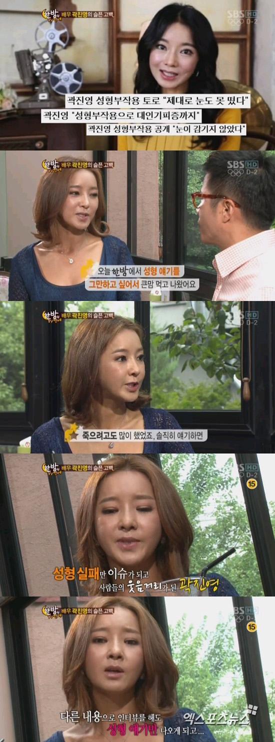 25日放送された SBS '一夜の TV芸能'では 90年代の援助国民妹さんと呼ばれたグァックジンヤングが出演して成形副作用に対して率直な話を打ち明けた.