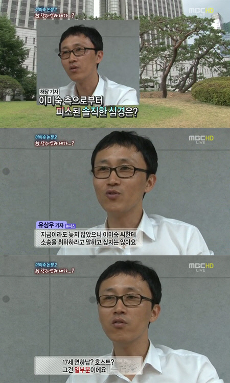 引き継いで "17歳年下の男? ホスト? それは一部分だ. 他のものなども多い. (まだ記事化しない)そんなものなどが果して公開された時イ・ミスクのイメージは今よりもっと大きい打撃を受けることができる"と "そんな部分においてイ・ミスクの今度訴訟はとても誤った訴訟だと思う"と付け加えた.