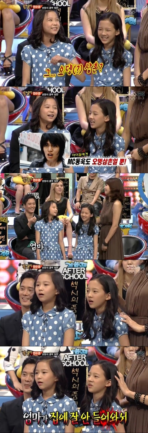 双子娘は "ママが痛い時本当に悩み苦しんで笑う時気持ちが良い. 痛くないでいつもゴンガングヘウなら良いだろう"と言って伝授頃を胸がいっぱいにさせた.(写真=SBS '強心臓' キャプチャ)