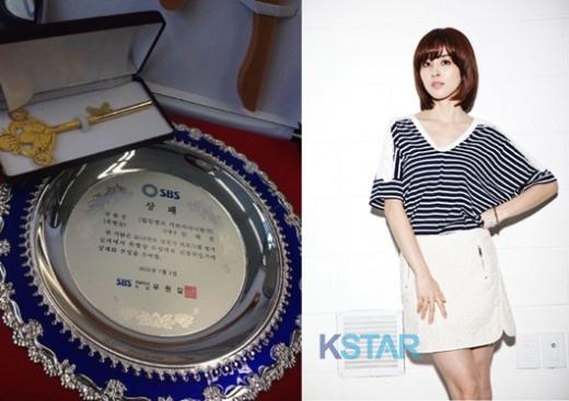 公開された写真の中には SBS ウワンギル社長がハン・へジンに授与したお皿模様の賞牌が盛られている. 賞牌によればハン・へジンは MCで出演中の SBS 'ヒーリングキャンプ-嬉しくないか'で 2012 上半期プログラム評価心の特別賞を受賞した.