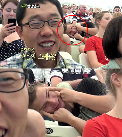 [SBS 'ヒーリングキャンプ, 嬉しくないか' 2012 ロンドンオリンピック特集 'ロンドンキャンプ'でキム・ジェドンの裏手で東洋人を卑下じる行動をした外国人観衆. 写真 = SBS 放送化ならキャプチャ] 記事情報提供及び報道資料press@mydaily.co.kr