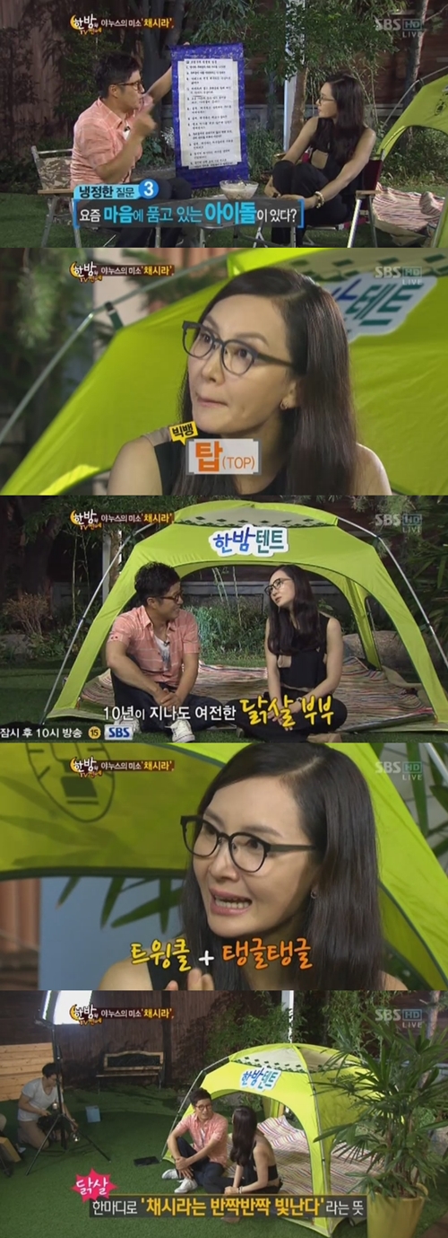 引き続きひったくりなさいという "このごろ特別に心に抱いている男アイドルメンバーがいるのか"と言う質問に一寸のためらうことなしに "ビッグバン塔を目を注いでいる"と返事して関心を集めた.(写真=SBS '一夜の TV芸能' キャプチャ)