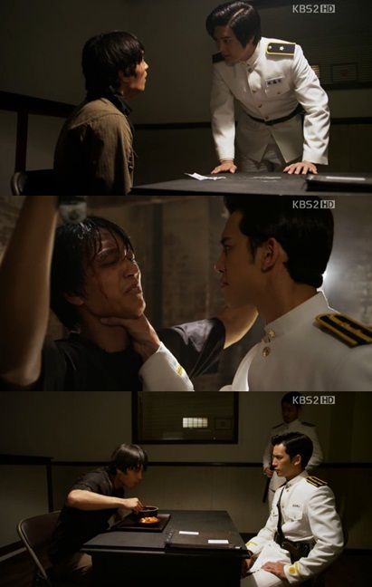 23日午後放送された KBS 2TV 水木劇 'ガックシタル'から李領土(住院分)は生け捕ったトンジン決死隊ドックス(金方円分)街自分のお母さんと兄さんを殺したと暴行をはたらいてKimura 슌地(パク・キウン分)の目をぬすもうと思った.