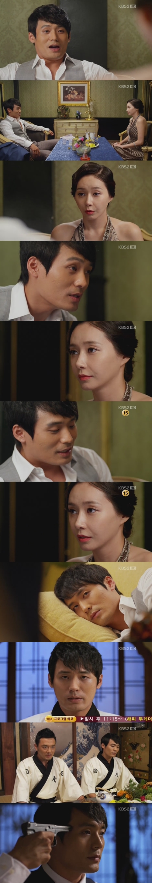 この日家に帰った理解席は酒に酔って眠った振りをして自分のお父さんである移施用伯爵(アンソックファン分)とお母さん伯爵夫人(キム・ジョンナンの方)の話を盗み聞きをしたしこれをそのまま伝達した. 以後キショカイ会員に加入するようになった理解席は "公薦献金 10万ウォンは独立軍のために使われること"と言う(のは)手紙を残したまま消えたし頭に向けて銃口を狙ったまま銃声だけ聞こえるだけだった. (写真= KBS 2TV 'ガックシタル' キャプチャ)